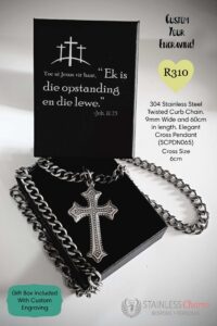 • Pendant: A striking 6cm crucifix charm, symbolizing faith, devotion, and strength.