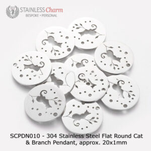 Stainless Steel Cable Chain with Flat Round Cat & Branch Pendant
