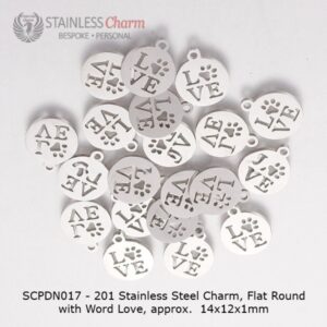 Express your love for pets with this delightful necklace, featuring a tarnish-resistant 304 stainless steel cable chain, 2mm wide and 50cm in length. The round pendant showcases the word “LOVE,” with the letter “O” cleverly replaced by a charming paw print, symbolizing affection and loyalty. (SKU-SCPDN017)