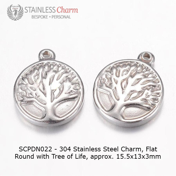 Stainless Steel Cable Chain with Flat Round Tree of Life Pendant