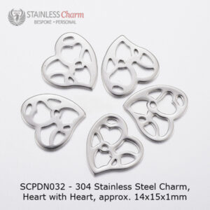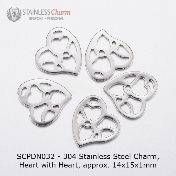 Stainless Steel Cable Chain with Heart & Heart Charm Pendant