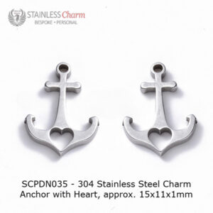 This stylish necklace features a tarnish-resistant 304 stainless steel cable chain, 2mm wide and 50cm in length. The pendant is a beautifully crafted anchor design with a heart cutout, symbolizing strength, stability, and love.