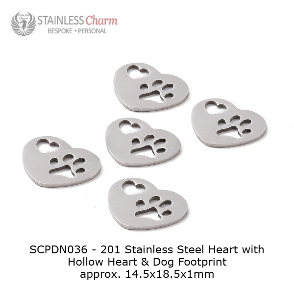 Stainless Steel Cable Chain with Hollow Heart and Dog Footprint Pendant