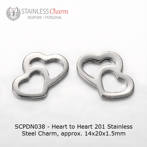 This charming necklace features a tarnish-resistant 304 stainless steel cable chain, 2mm wide and 50cm in length. The pendant is a beautifully crafted Heart to Heart design, symbolizing love, connection, and unity.