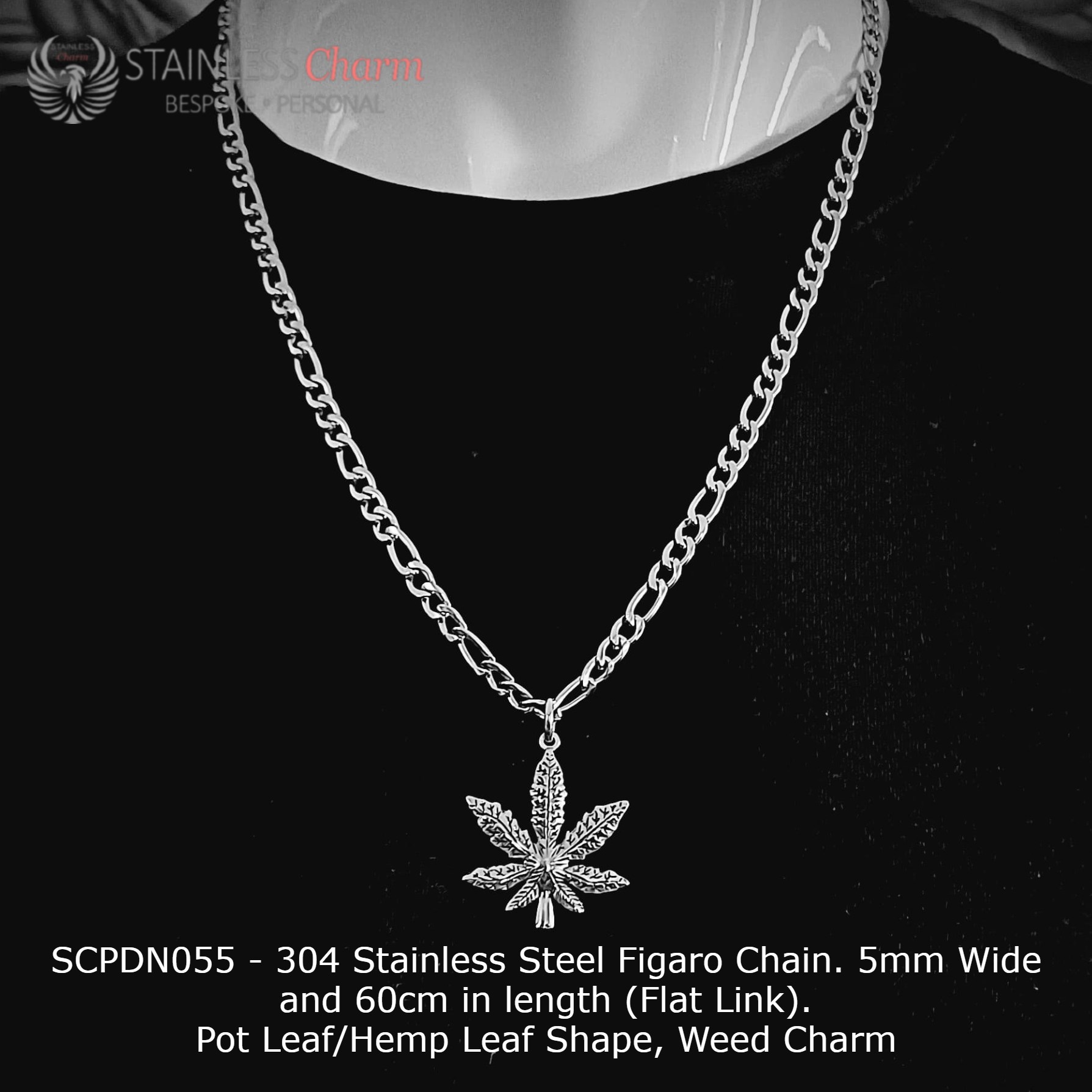304 Stainless Steel Figaro Chain with Pot Leaf/Hemp Leaf Pendant ā Weed Charm Design