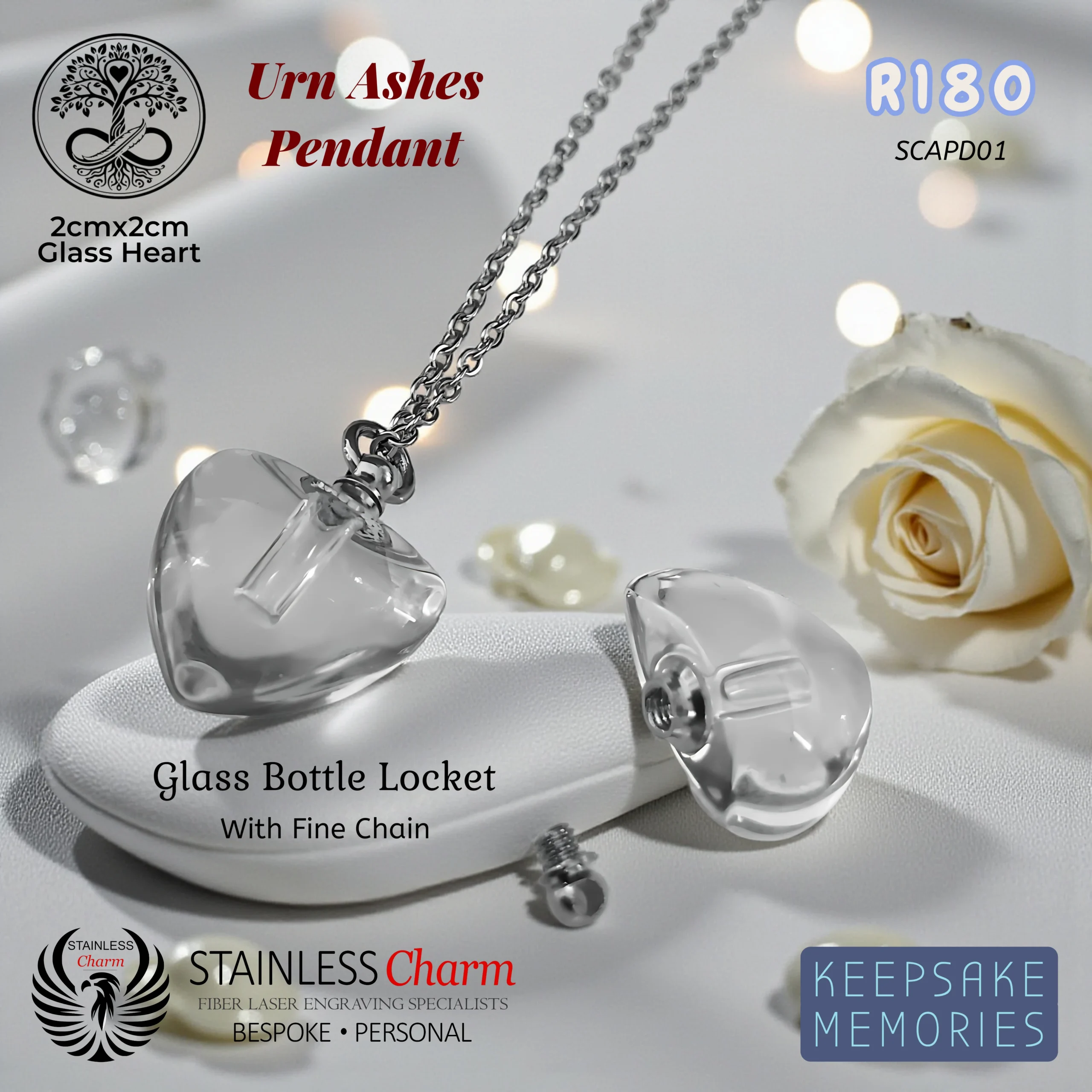 Urn Ashes Pendant – Glass Heart Bottle Locket