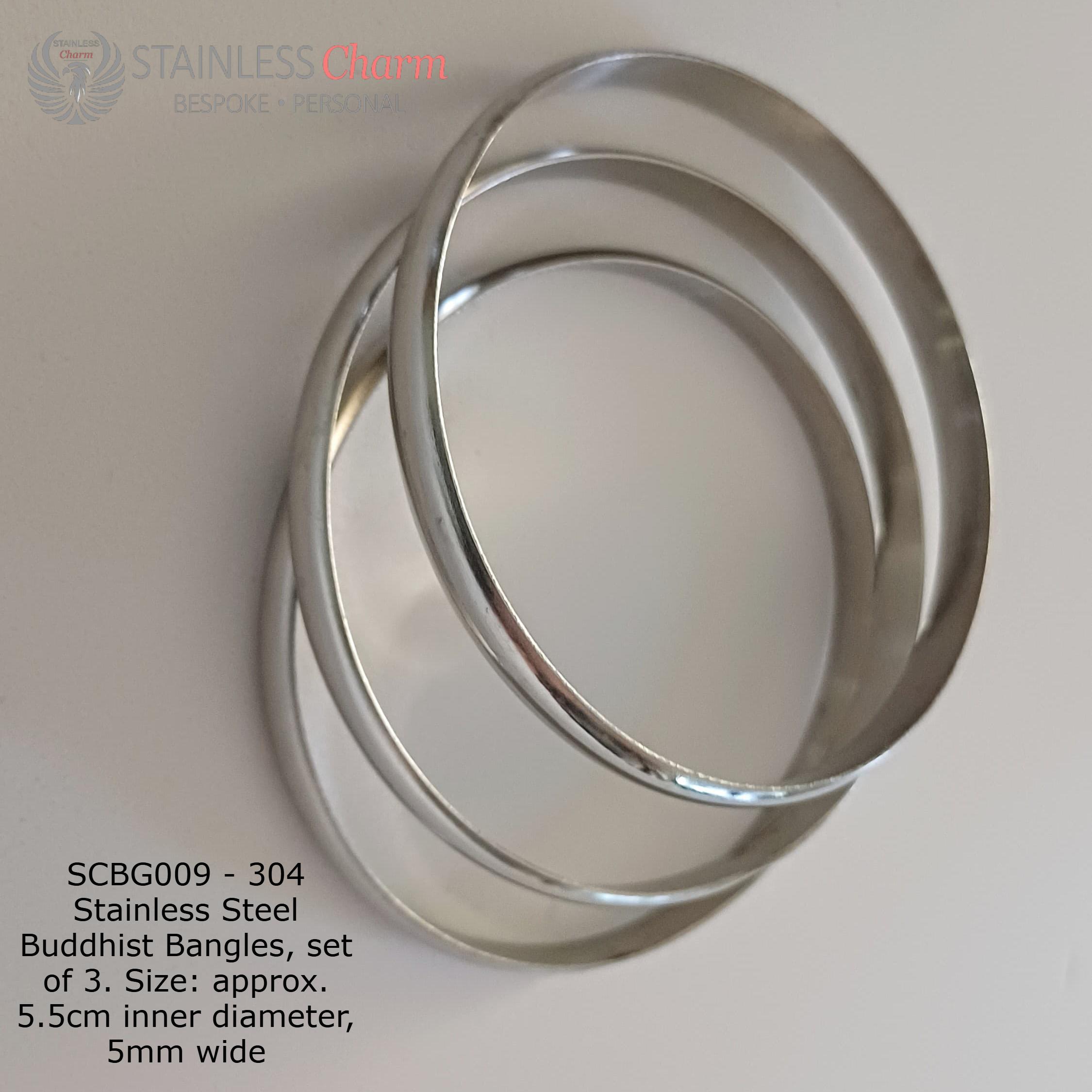 304 Stainless Steel Buddhist Bangles, set of 3. Size: approx. 5.5cm inner diameter and 5mm wide