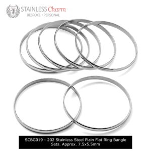 Elegant and Stylish 202 Stainless Steel Plain Flat Ring Bangle Set of 3.  Approx. 7.5×5.5mm