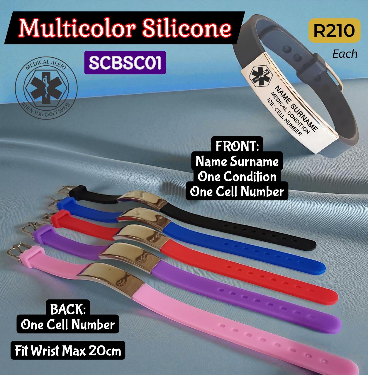 Silicone Band Bracelet with Tarnish Resistant 201 Stainless Steel Link. (SKU-SCBSC01BCA)