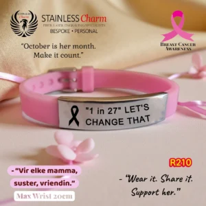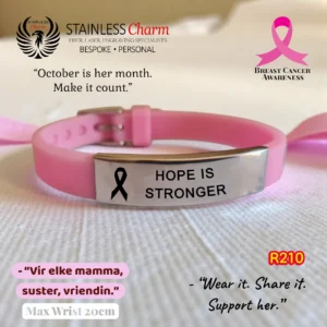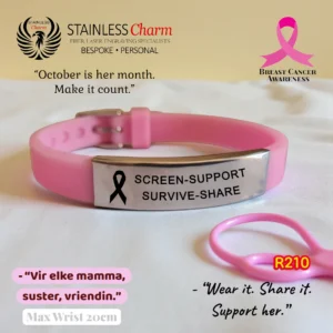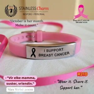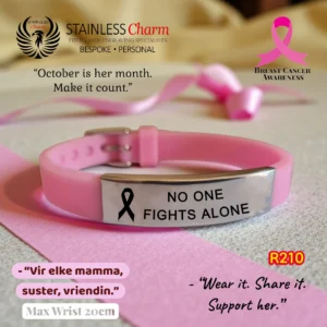 At Stainless Charm, we believe no one should fight alone. Show your solidarity with our special collection of Breast Cancer Awareness bracelets. Each one carries a message of hope, strength, and community.