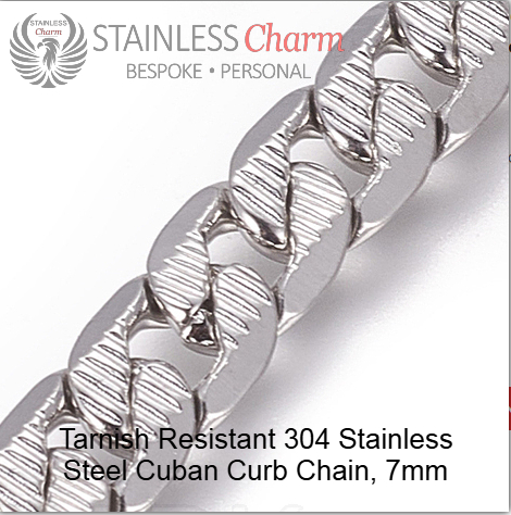Tarnish-resistant 304 stainless steel link, Rectangle, Size: 41x10x1.5mm, Hole: 4x5mm, 304 stainless steel Cuban chunky curb Chain, 7 mm. (SKU-SCBSS003)