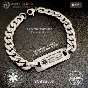 This stainless steel medical alert bracelet feels high-end and secure. The material is durable and the engraving is very legible. It’s a perfect blend of fashion and functionality. I highly recommend it!