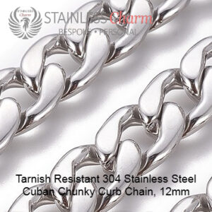 Tarnish-resistant 201 stainless steel link, Rectangle, Size: 44.5x12x1mm, Hole: 6x9mm, 304 stainless steel Cuban Chunky Curb Chain, 12mm. (SKU-SCBSS008)