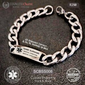 This medical alert bracelet is perfect! The stainless steel is durable and doesnât tarnish. I appreciate how comfortable it is to wear daily. The clear engraving gives me peace of mind. Highly recommend for anyone needing a medical alert.