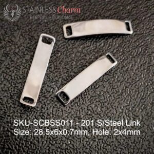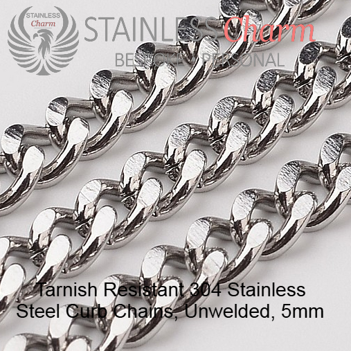 Tarnish-resistant 201 stainless steel link, oval, size: 28.5 x 6 x 0.7 mm, 304 stainless steel curb chain, unwelded, 5 mm. (SKU-SCBSS011)