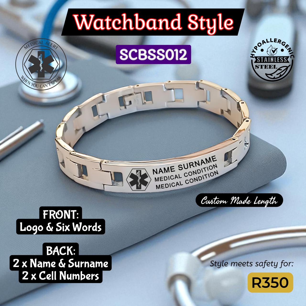 I feel so much safer wearing this bracelet. The front and back custom options covered exactly what I needed. The staff was kind and professional, and delivery was fast and smooth.