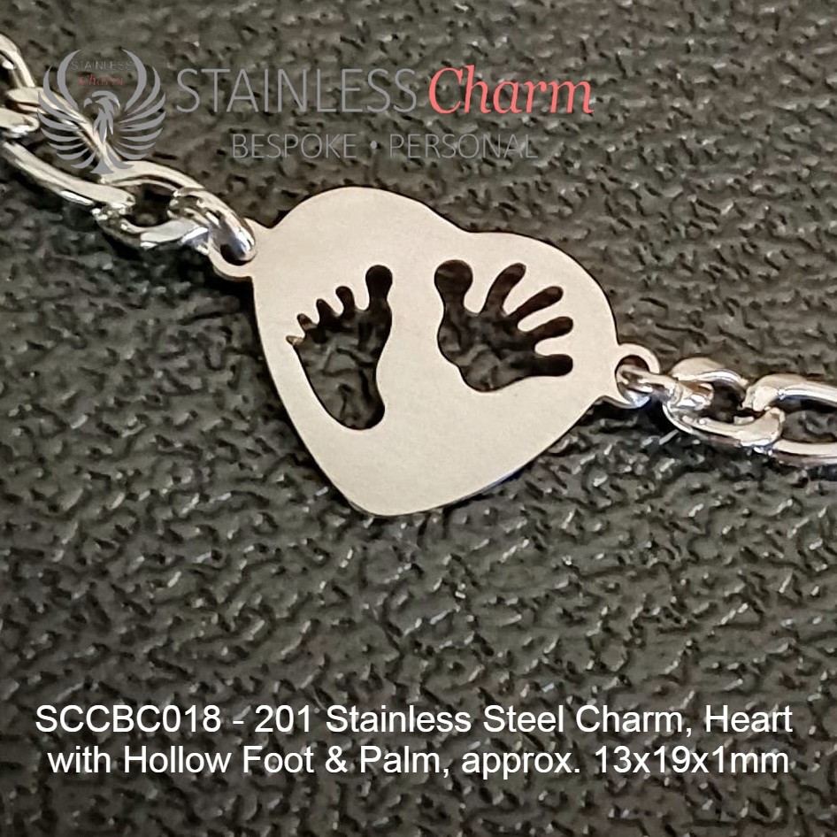 Non-Tarnish Stainless Steel Heart with Hollow Foot & Palm Charm Bracelet
