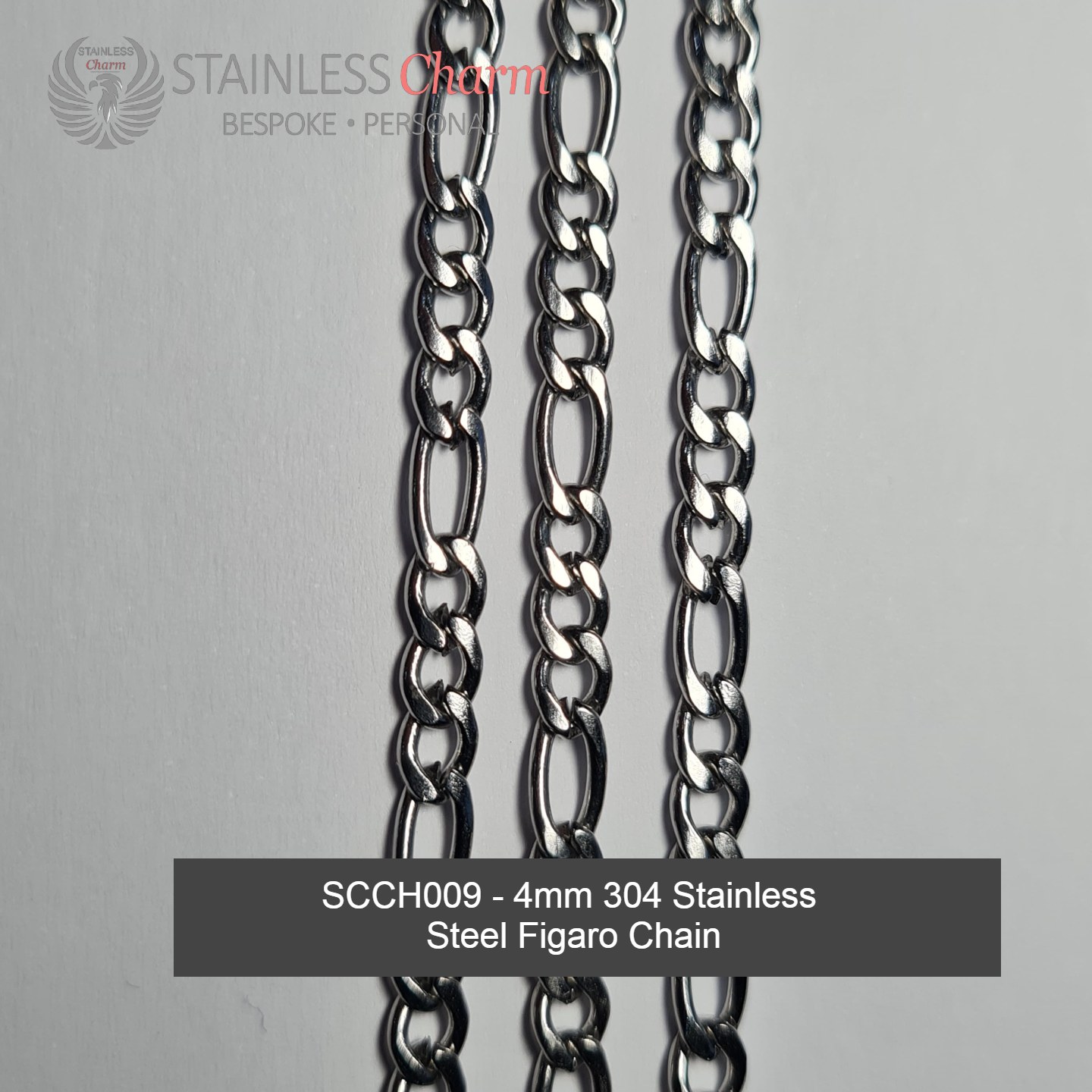 SCCH009 – 4mm 304 Stainless Steel Figaro Chain