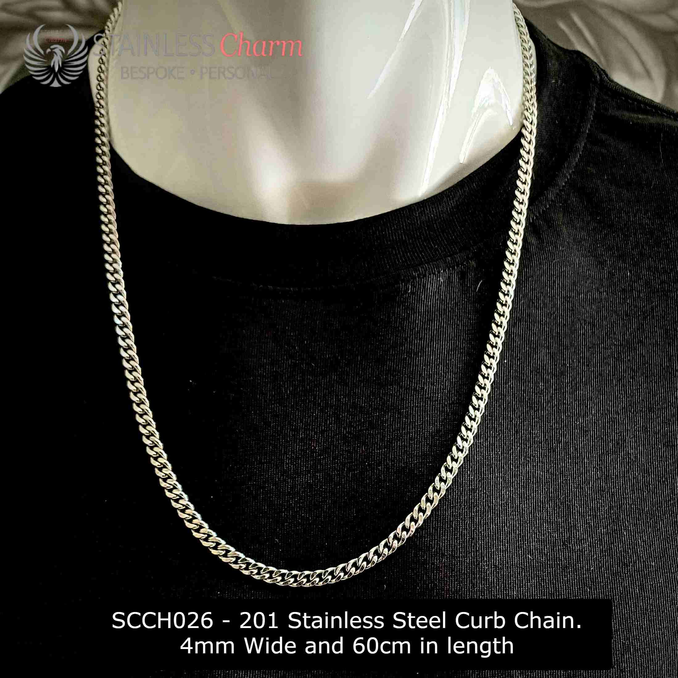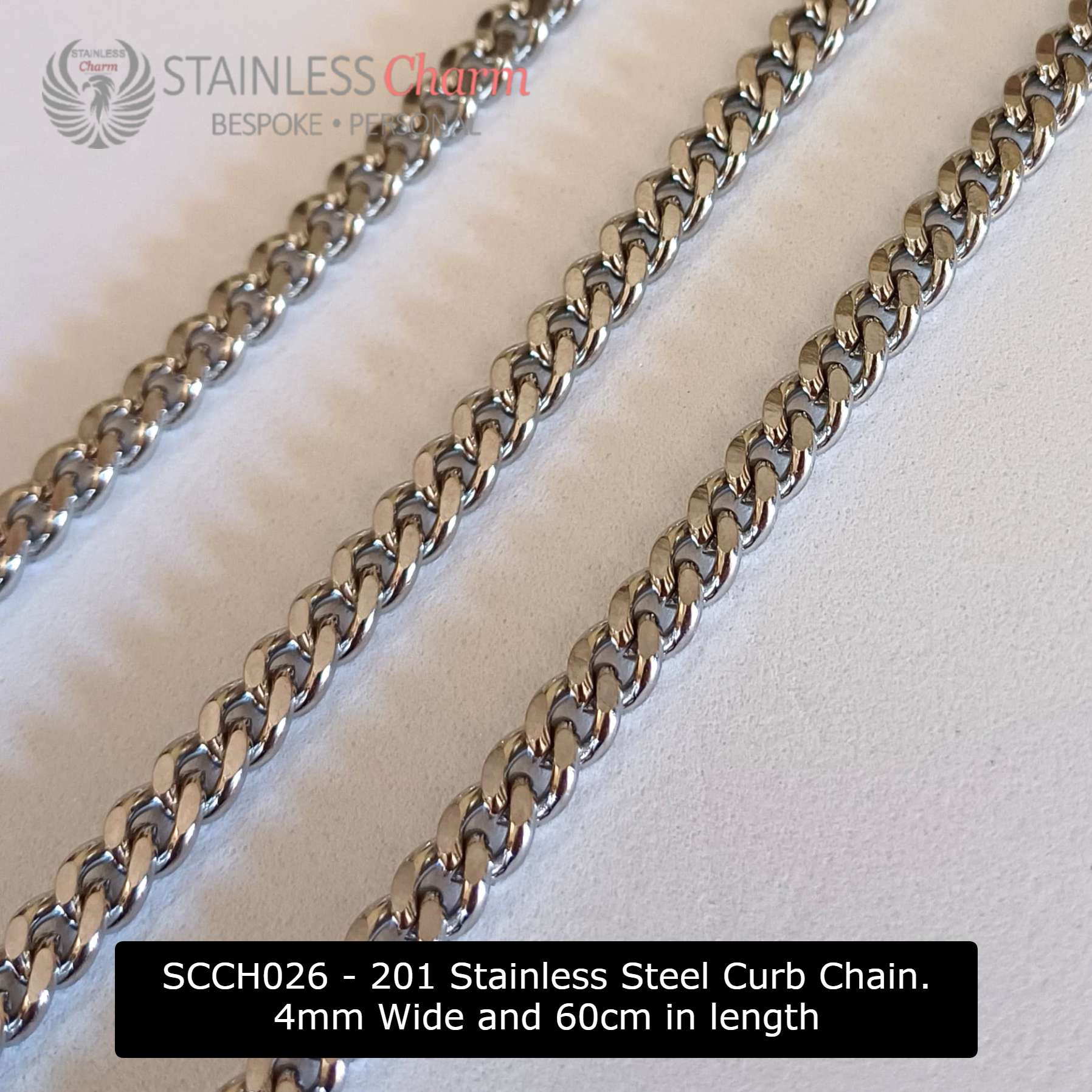 201 Stainless Steel Curb Chain. 4mm Wide and 60cm in length (SKU: SCCH026)