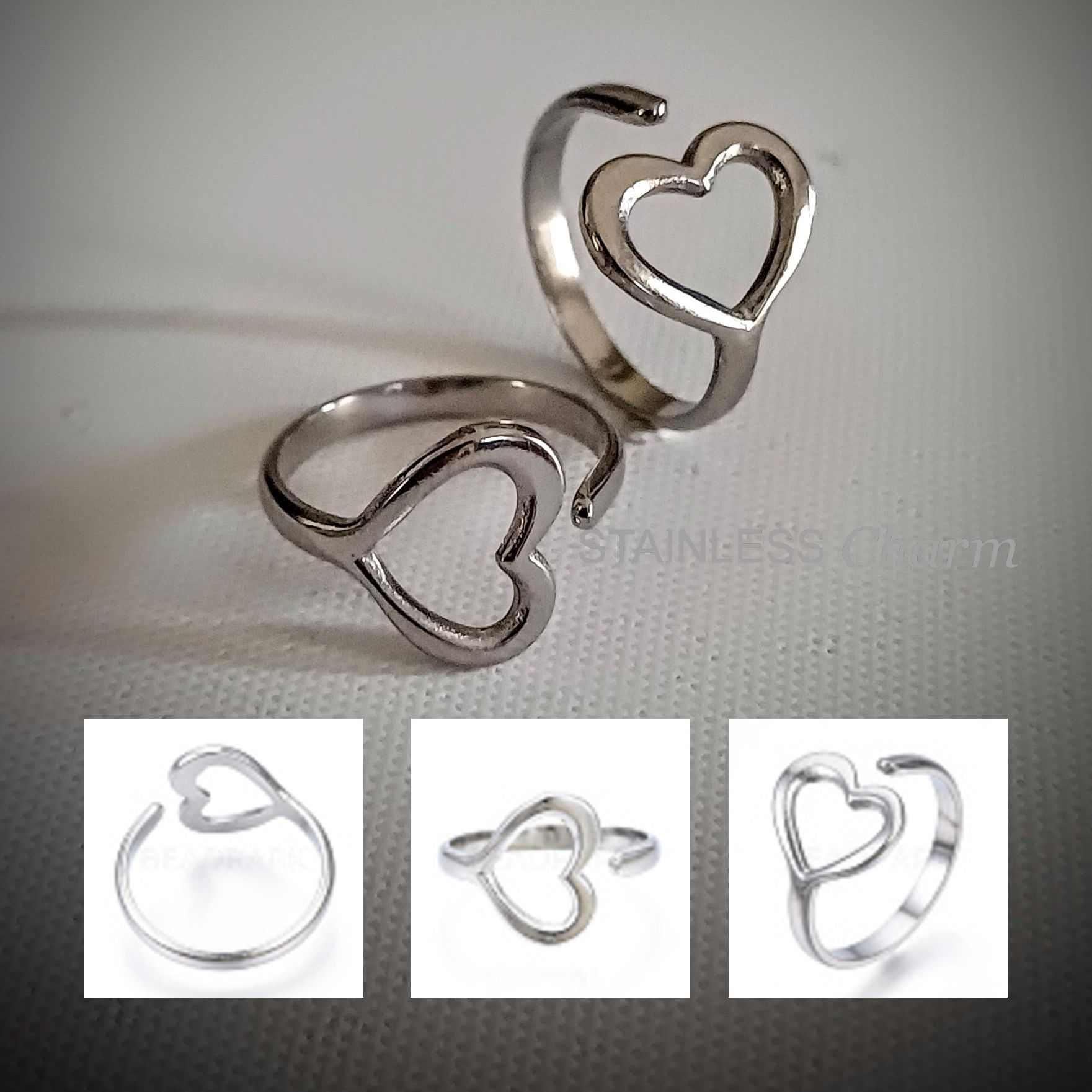 Non-Tarnish 304 Stainless Steel Heart Open Cuff Ring