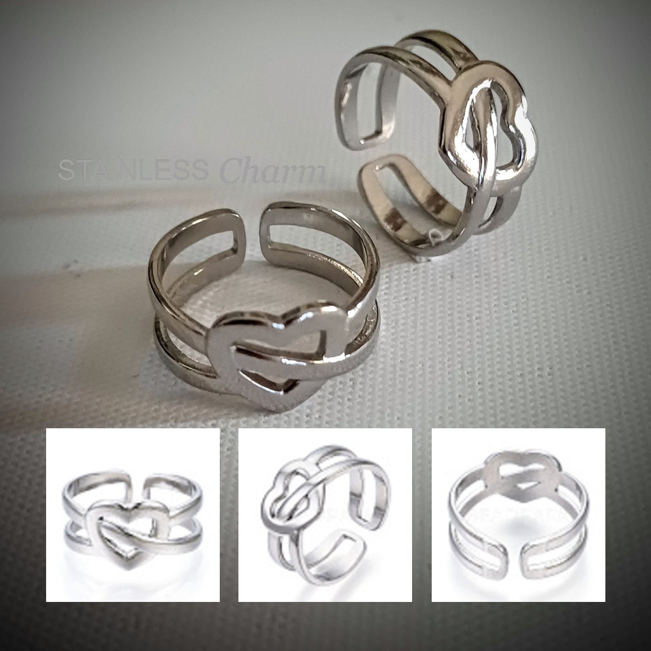 Non-Tarnish 304 Stainless Steel Heart Open Cuff Ring