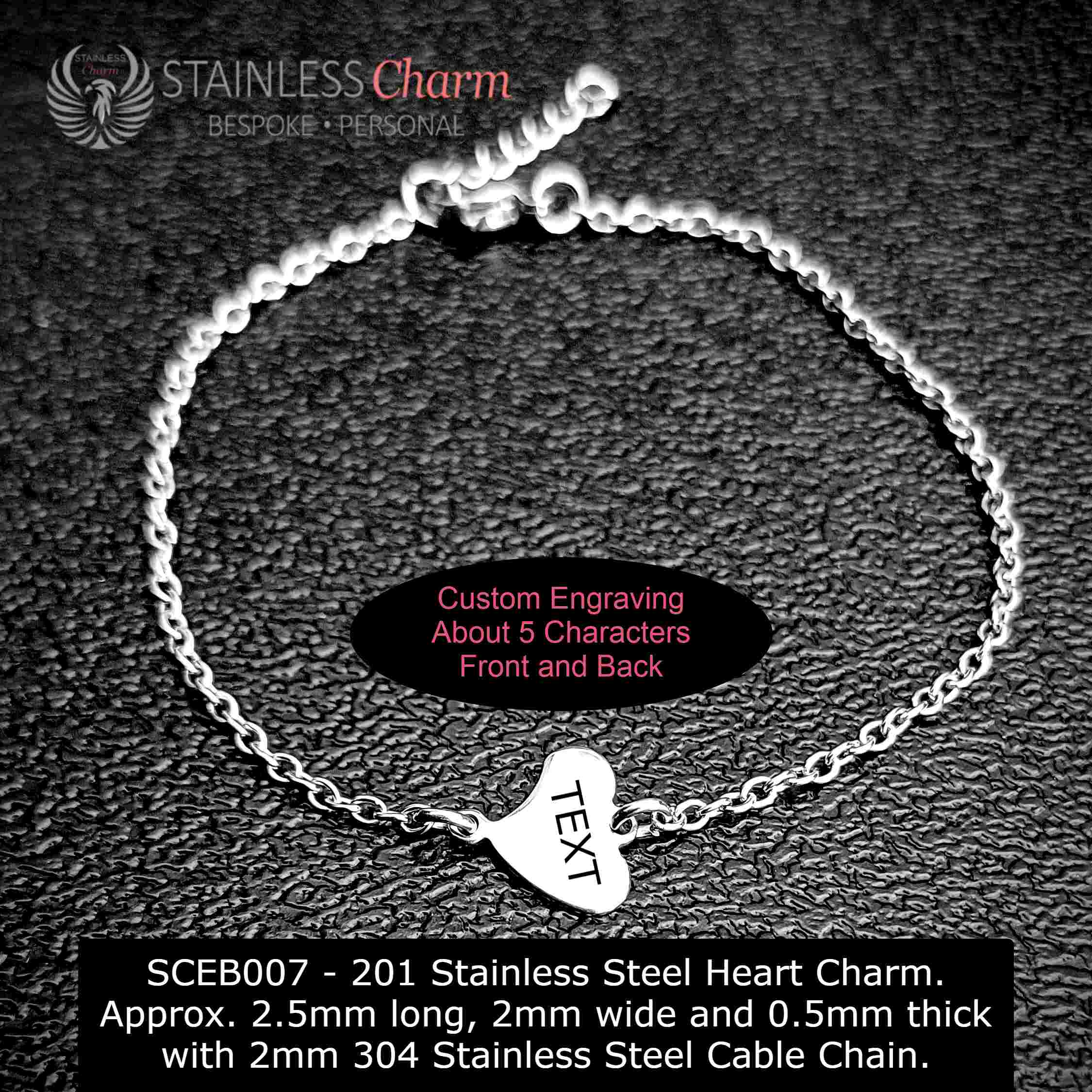 Non-Tarnish Stainless Steel Heart Charm Engraving Bracelet