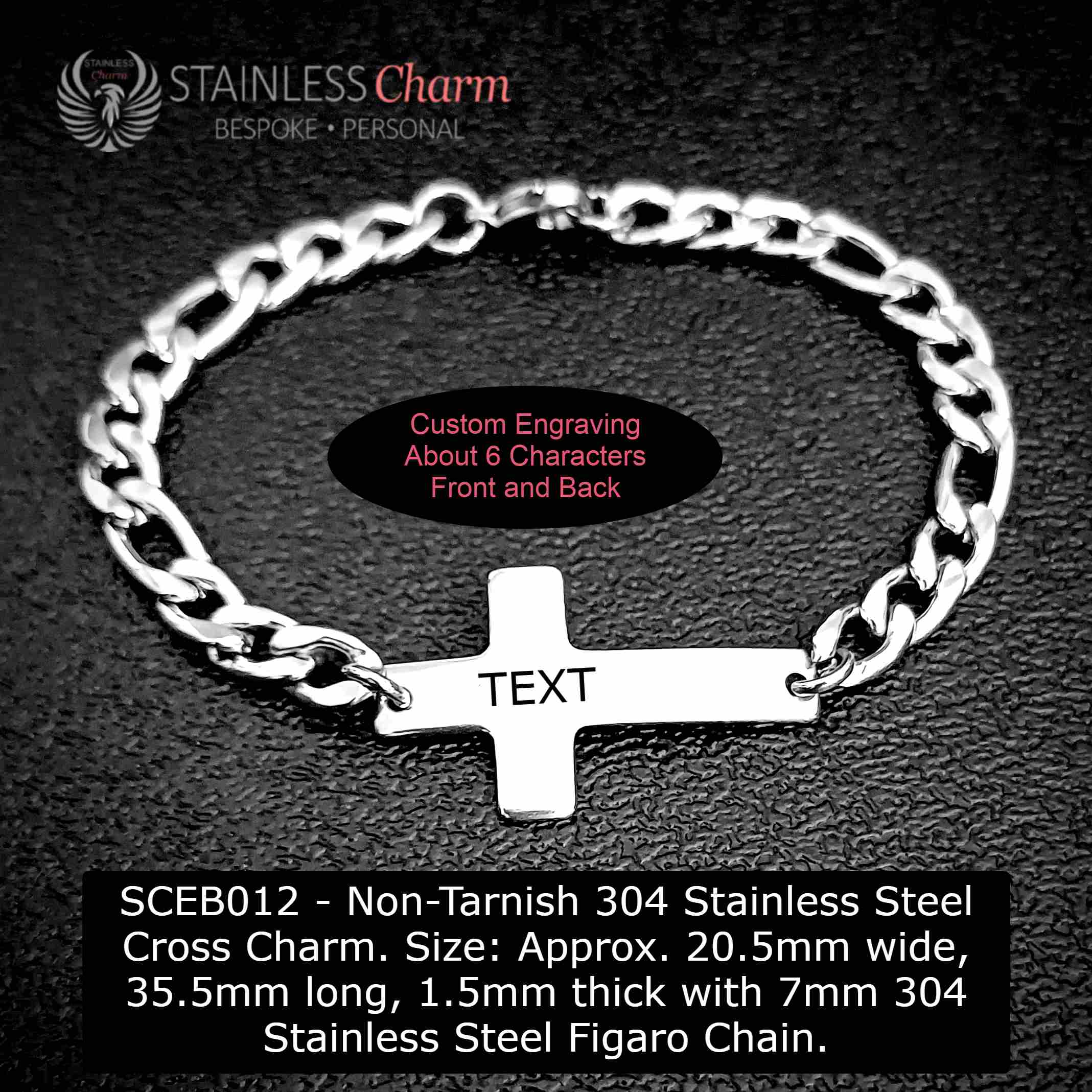 Non-Tarnish Stainless Steel Cross Charm Engraving Bracelet