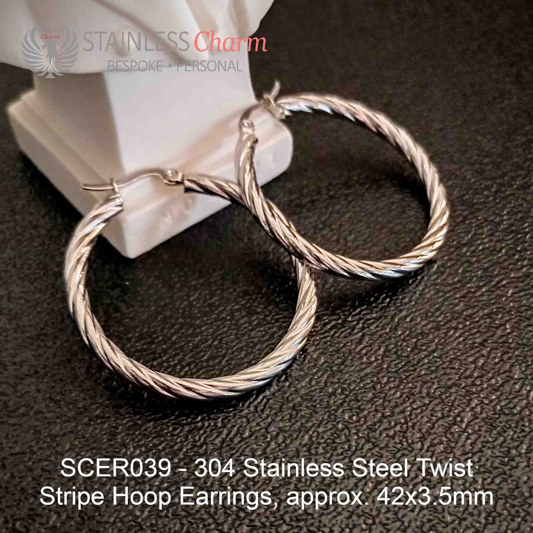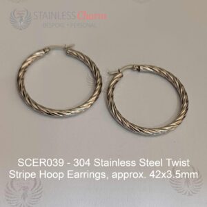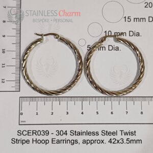 304 Stainless Steel Twist Stripe Hoop Earrings, approx. 42×3.5mm