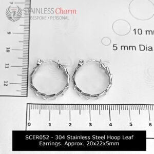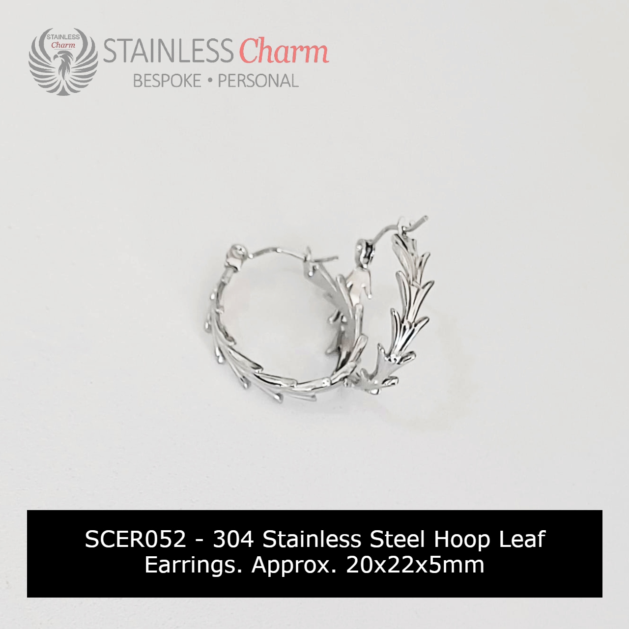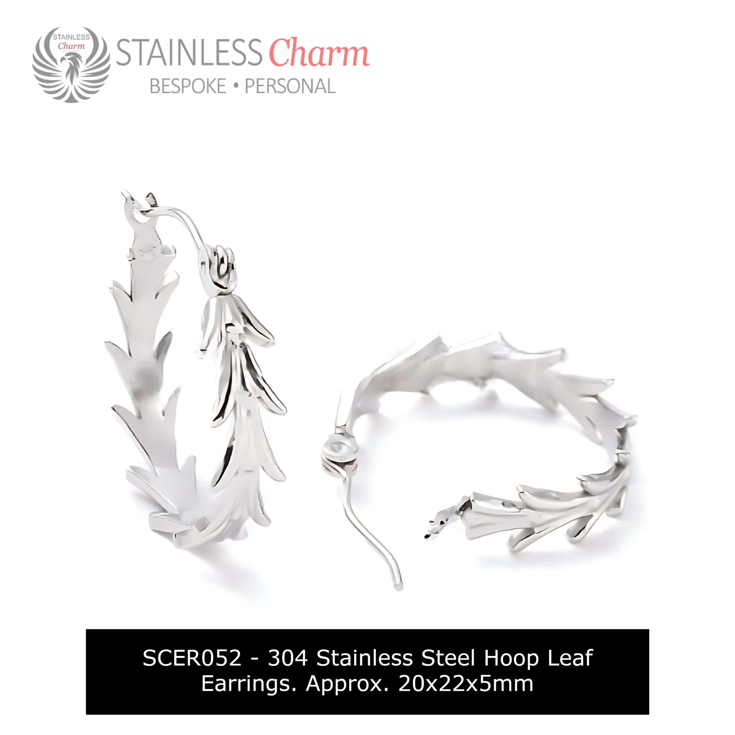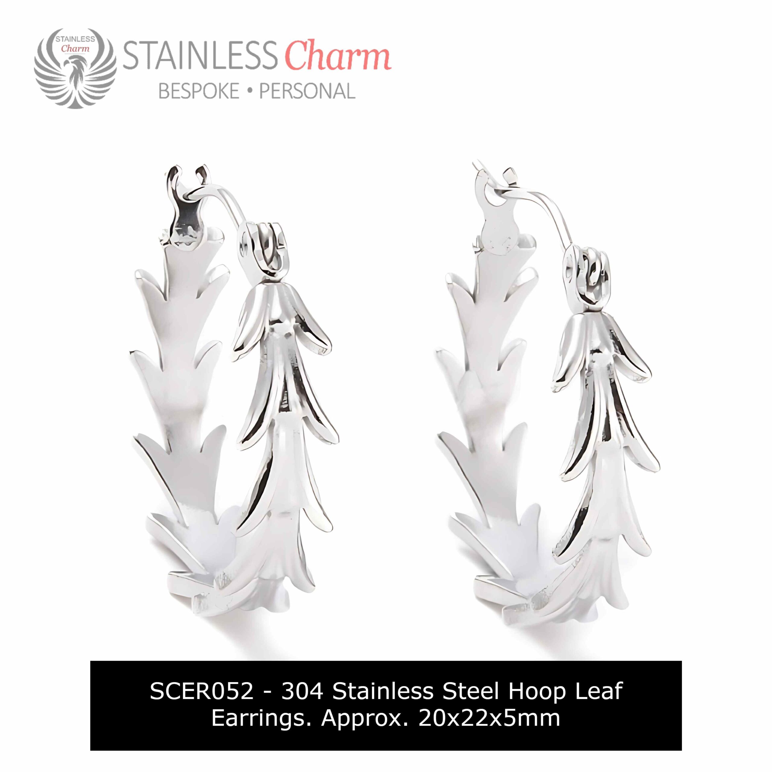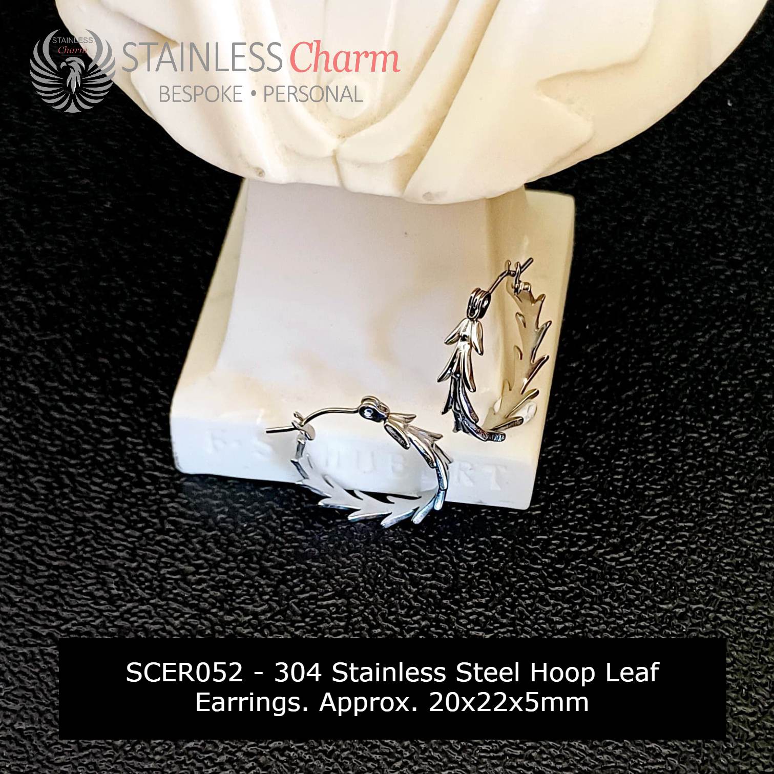 304 Stainless Steel Hoop Leaf Earrings. Approx. 20x22x5mm