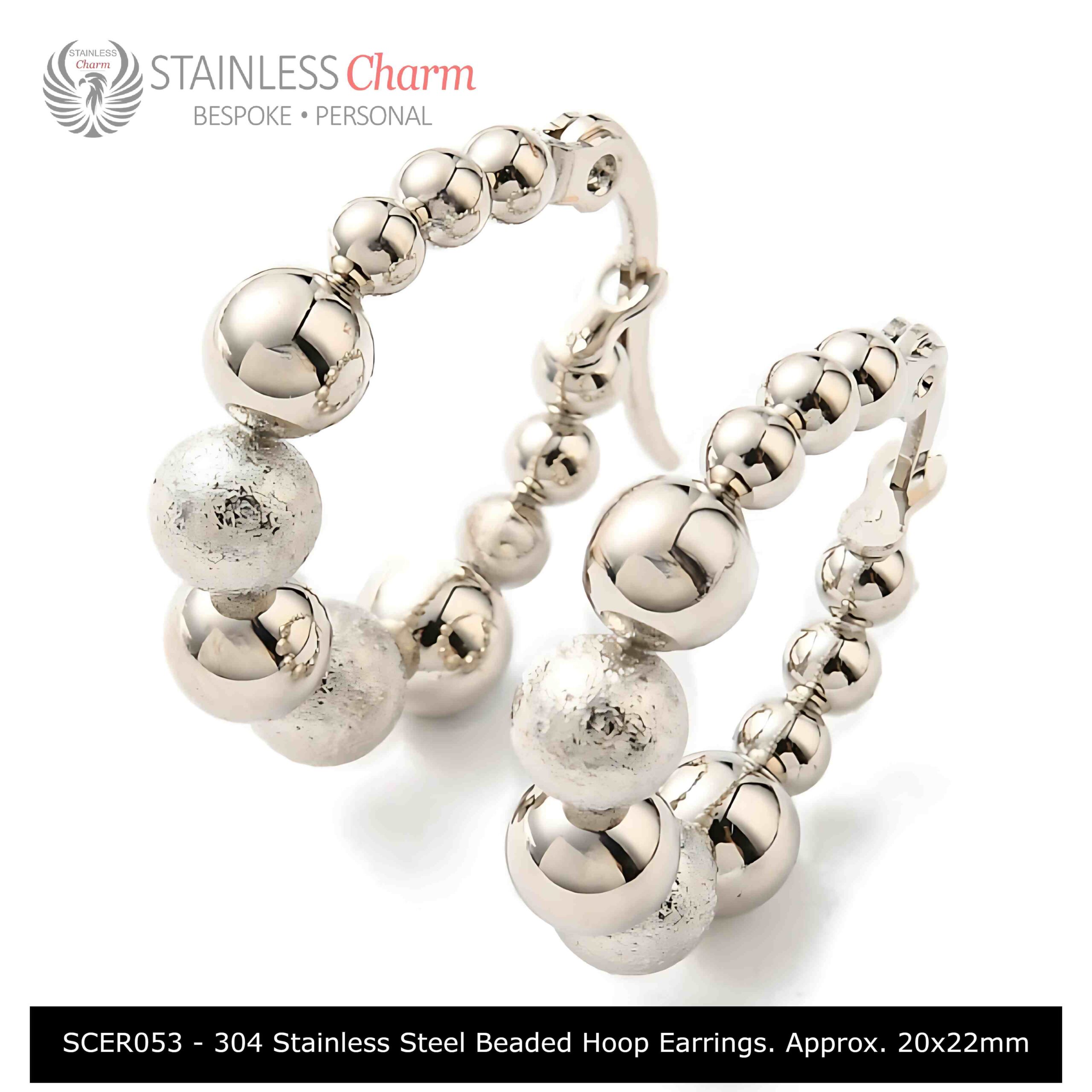 Tarnish Resistant 304 Stainless Steel Beaded Hoop Earrings