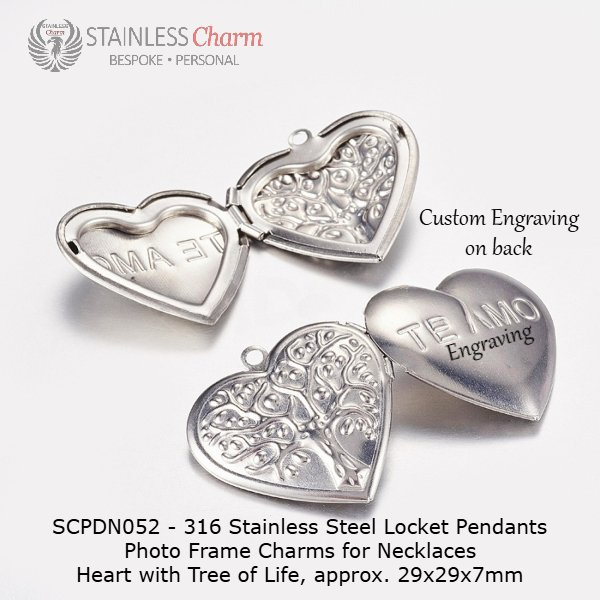 Stainless Steel Figaro Chain with Heart Locket Pendant – Tree of Life Design