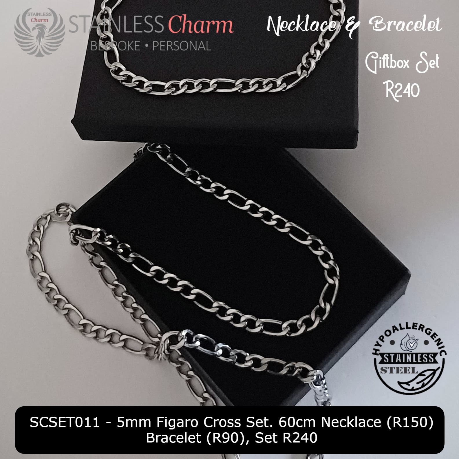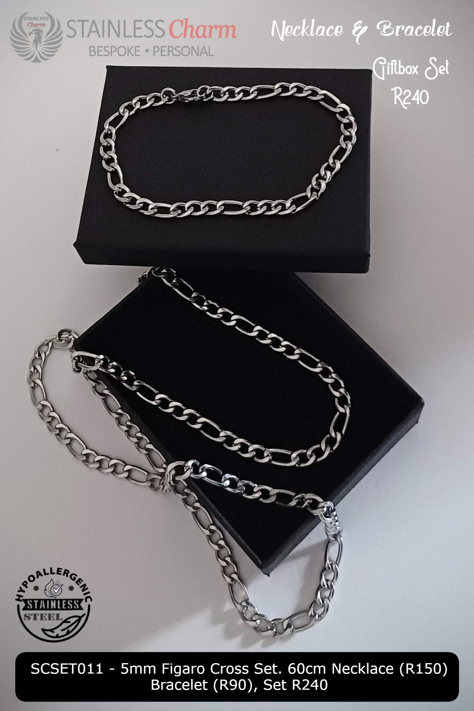 Stainless Steel Figaro Chain Set – 5mm