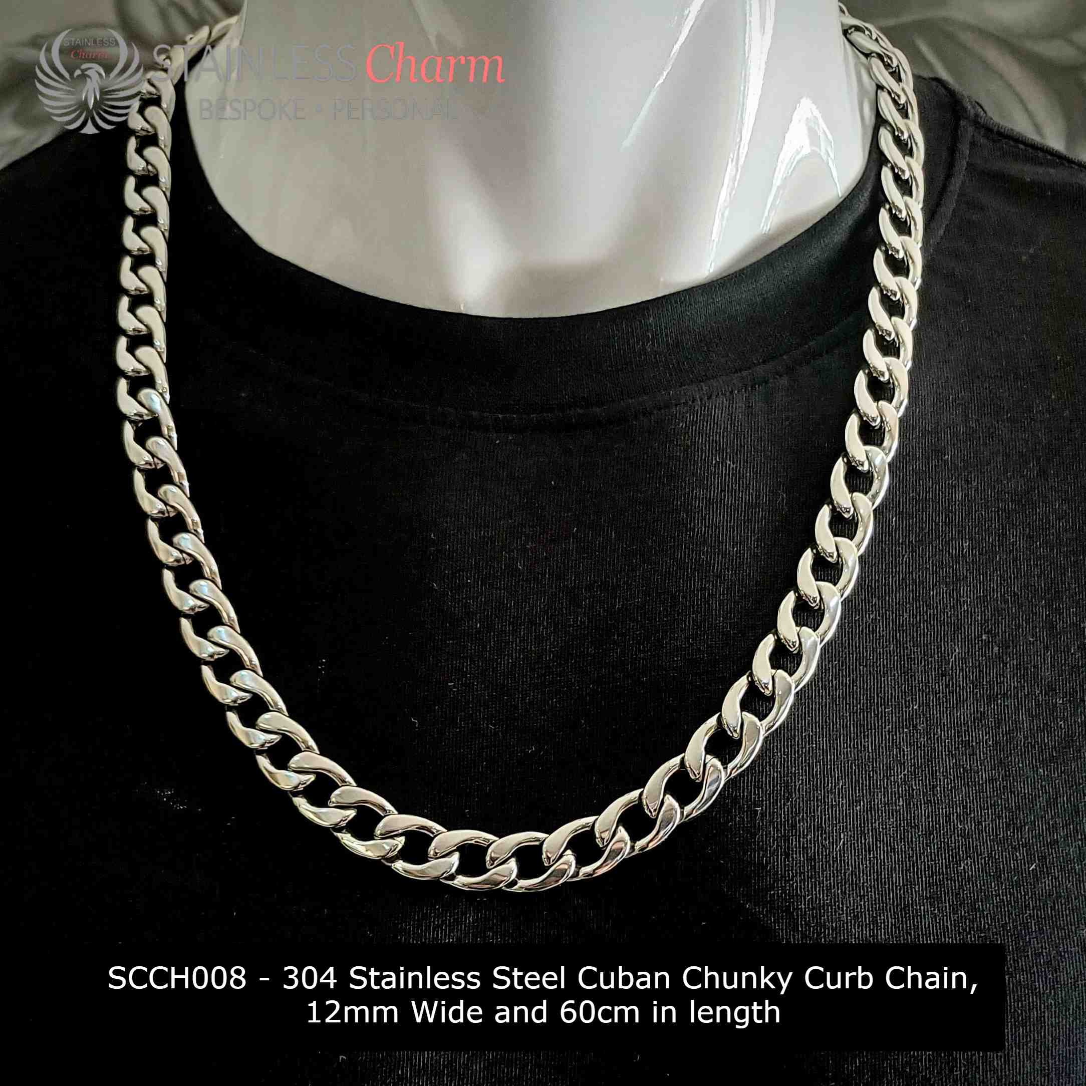 304 Stainless Steel Cuban Chunky Curb Chain, 12mm Wide and 60cm in length