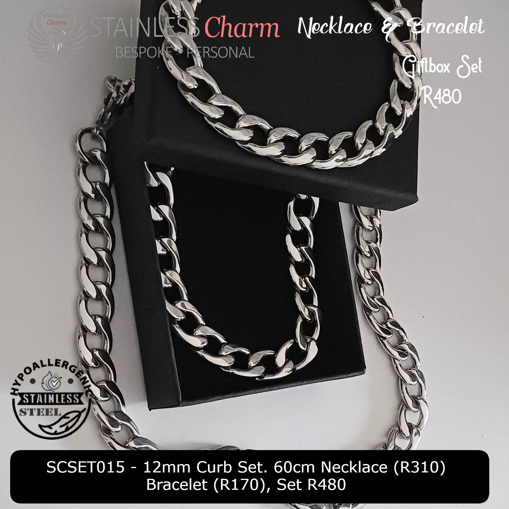 12mm Curb Set. 60cm Necklace (R310) Bracelet (R170), Set R480