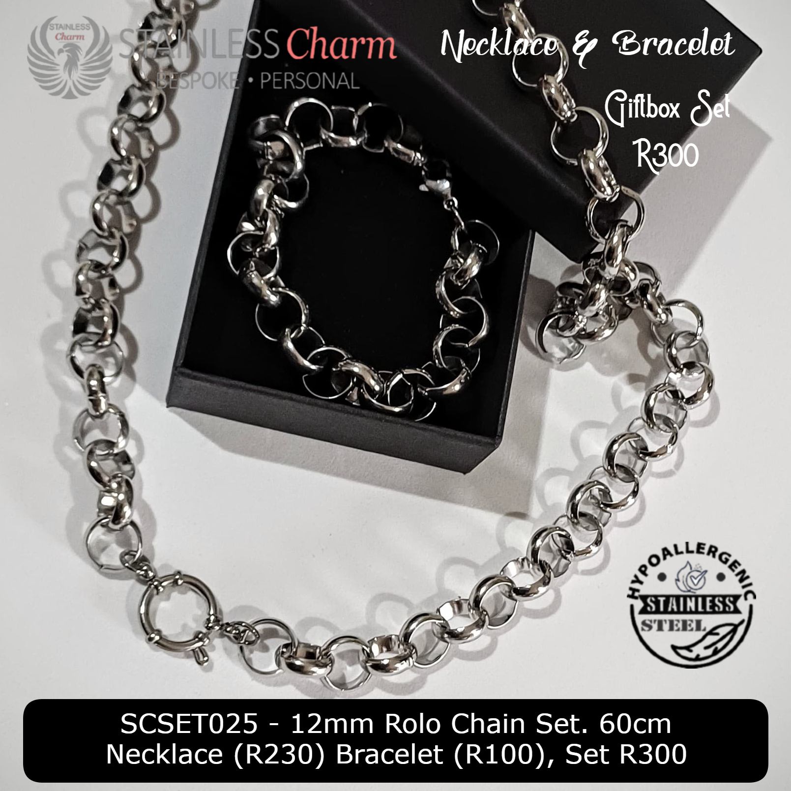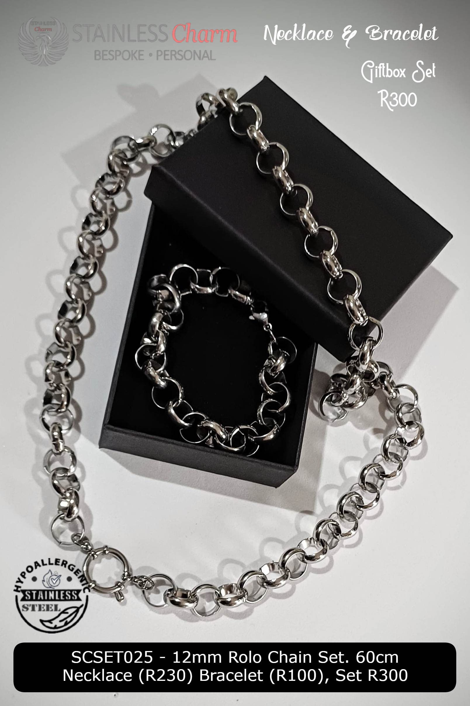 12mm Rolo Chain Set. 60cm Necklace (R230) Bracelet (R100), Set R300