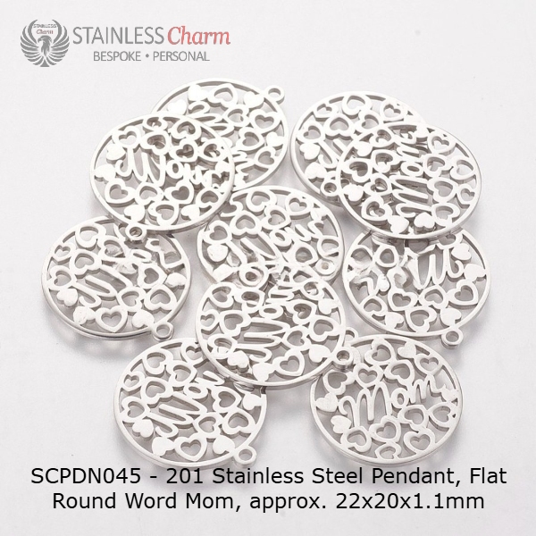 - A pendant (2cm in diameter), engraved with the word “Mom” and an elegant decorative design