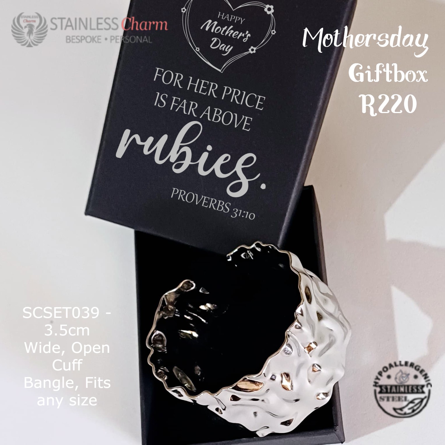 - A bold 3.5cm open cuff bangle, designed for strength and elegance