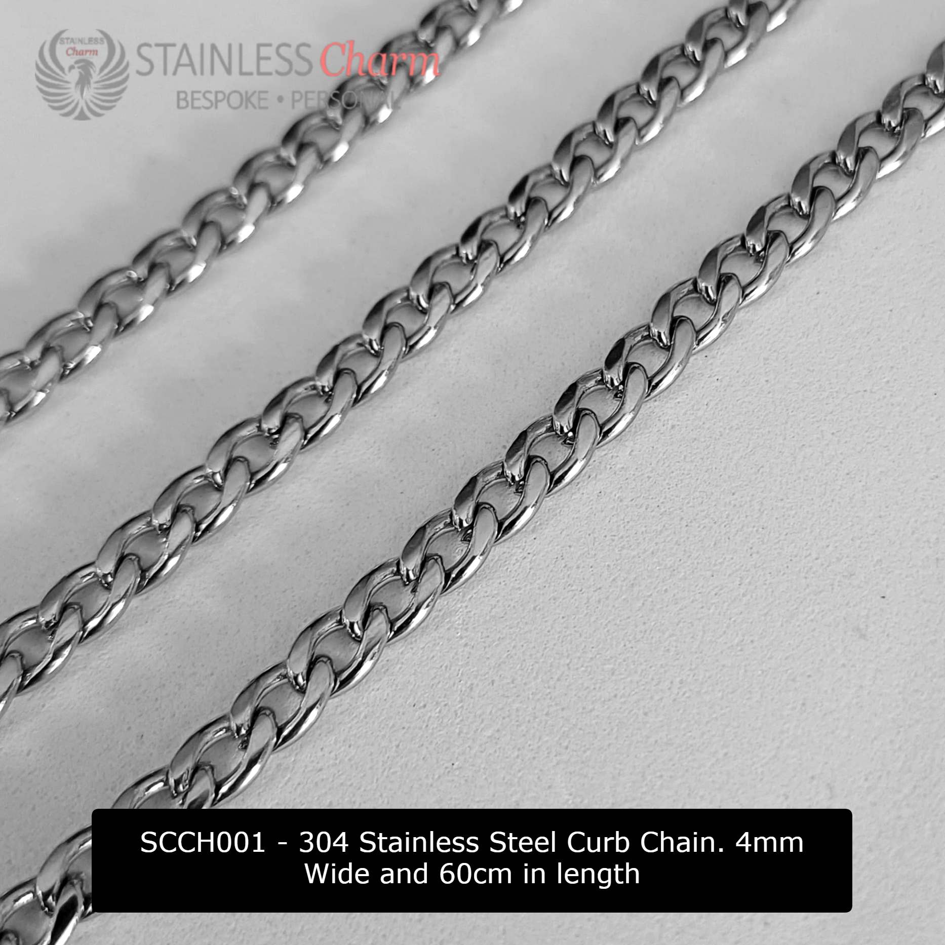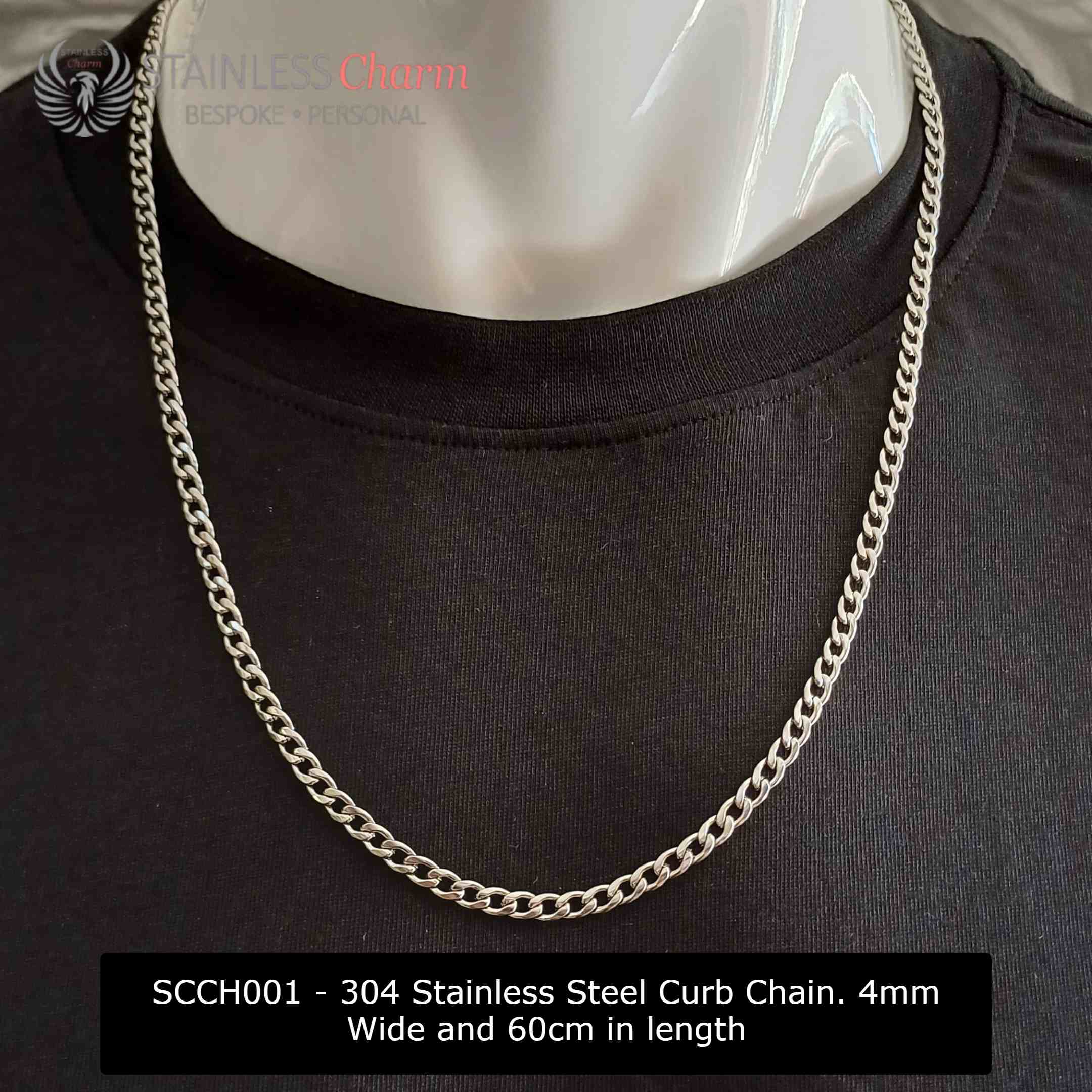 304 Stainless Steel Curb Chain. 4mm Wide and 60cm in length (SKU: SCCH001)