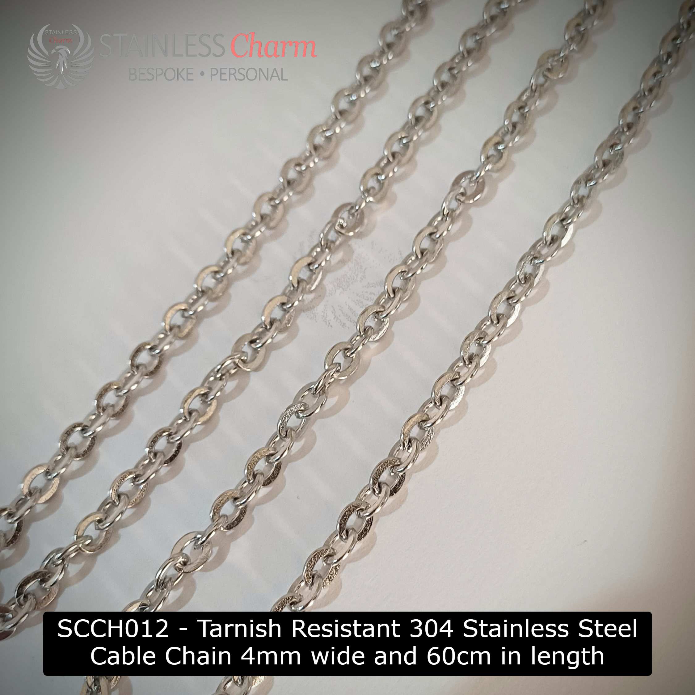 Tarnish Resistant 304 Stainless Steel Cable Chain 4mm wide and 50cm in length.Ā (Soldered, Flat Oval) (SKU: SCCH012)